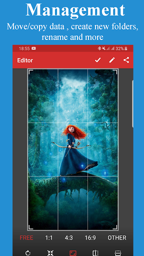 – Internal picture editor which allows you to rotate, shrink, crop pictures, set wallpaper with best quality freely