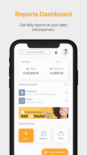 Timart business app makes managing your business easier. From your mobile phone, you can track your sales, expenses and inflow, control inventory and recover debts faster. Always be aware of your business's financial health with Timart automatic net profit and loss report.