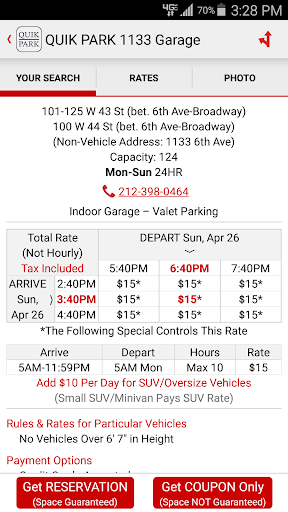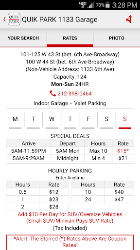 - Quick access to hundreds of coupons that make parking in New York City cheaper.