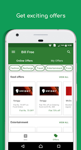 Bill Free also provides analysis of your expenses in real time. Track your expenses in different categories as well as month wise
