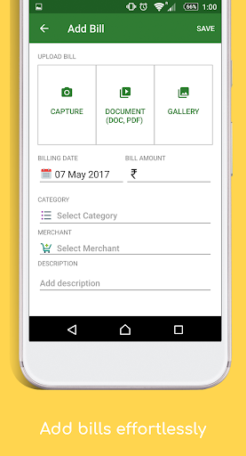 Existing bill can also be added manually. Either capture the image of the paper bill, upload a soft copy or picture from the gallery. Provide additional details like date, amount, category, merchant, and description for better organisation