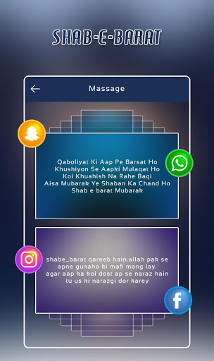 Shab E Barat Greetings Messages and Images app is best application to share all kind of wishes like Good wishes and so on using whatsapp , facebook , instagram , tumblr , google plus etc .. all social apps.