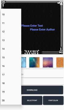Create your quotes with picture offline and quotes reader app provide the edit and create your photo with quotes and author name change to you. quotes creator app will easy to add text, change color, change font and create your quotes with your name and image with downloading functionality.You can share in social app your thoughts and quotes with picture. Quotes Creator is the simple app which way to create quotes on my pic and image. Quotes Creator easy to customize options like as background