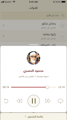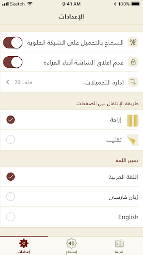 - Downloading a surah or a complete Mushaf to listen while being offline.