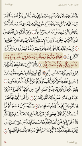 - Listen to Qur'an recitation from many reciters, and many narrations “Riwayat”, while verses that the reciter reads are being highlighted.