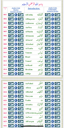 This is the first and unique Quranic App which presents the complete Quran in Arabic in modern computer generated Nastaleeq and classic calligraphic hand written Nastaleeq Arabic scripts with authentic Urdu translation and Arabic recitations by famous world reciters along with audio narrations of Urdu translation and Audio Tafheemul Quran and Tafseerul Quran.
