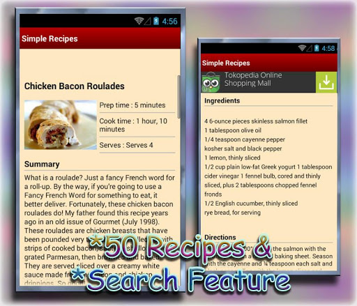 If you do not know about how to cook easy recipes well, you can try again with using this simple recipes app. In this recipes app you can find easy chicken recipes too. This application is very simple to use. In the Bottom of this application, there is a button to search for the name of the recipe. You can find the name of the recipes you