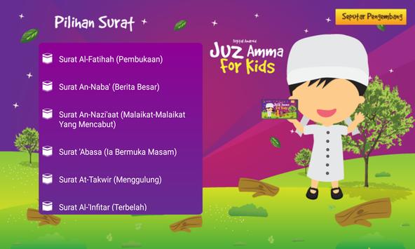 Juz ‘Amma ini juga dibuat untuk anak-anak untuk mencapai cinta mereka terhadap Allah dan Rasul-Nya. Untuk juga menarik minat mereka untuk membaca al-Quran serta memberi pemahaman yang lebih mendalam tentang surah-surah yang terkandung dalam Juz’Amma ini. Lengkap dengan ilustrasi-ilustrasi yang cantik dan menarik.