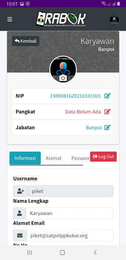 Aplikasi RABOK version 1.0 Rekapitulasi Absensi Birokrasi Online Karyawan Satpol PP Kutai Kartanegara