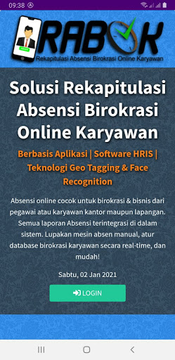 Solusi Rekapitulasi Absensi Birokrasi Online Karyawan. Berbasis Aplikasi, Software HRIS, Teknologi Geo Tagging & Face Recognition. Absensi online cocok untuk birokrasi pemerintahan & perusahaan bisnis, mulai dari pegawai atau karyawan kantor maupun lapangan. Semua laporan Absensi terintegrasi di dalam sistem. Lupakan mesin absen manual, atur database birokrasi karyawan secara real-time, dan mudah!