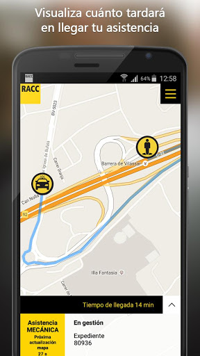 - In case of breakdown assistance, check the location of the unit that is coming to help you on the map, as well as the expected time of arrival.