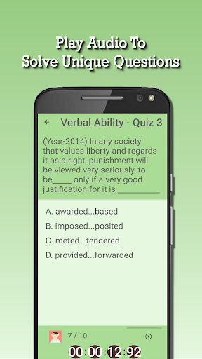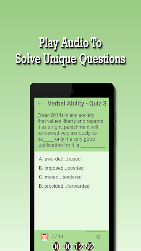 Objective of this educational app is to provide the great learning environment and build your confidence. By taking tests you can know your score. So upgrade your knowledge with this incredible CAT Exam Preparation, learning app for this competitive world.