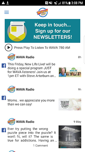 You decide when you want to listen, and when you want to browse by turning the live stream off or on within the app. Get what you want off the radio with the latest WAVA-AM 780radio app.
