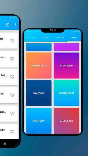 Busca tu emisora y agrégalo a tu lista de favoritos con un solo clic. La aplicación incluye un temporizador para apagar automáticamente la radio de manera muy fácil. También tenemos una gran variedad de temas que puedes cambiar dependiendo de tus gustos.