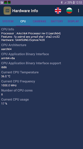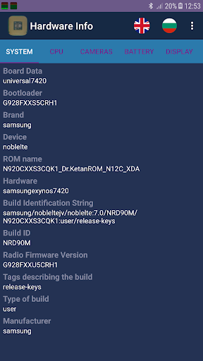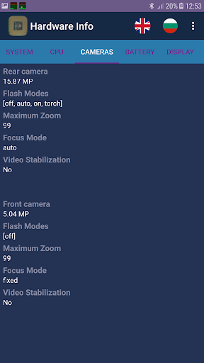 This app will give you detailed info about your device hardware - system, CPU, cameras, battery, display and sensors