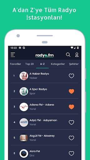 Bunun dışında tüm radyolar kategorilere ayrılmıştır. Kategori listemiz ise şu şekildedir;