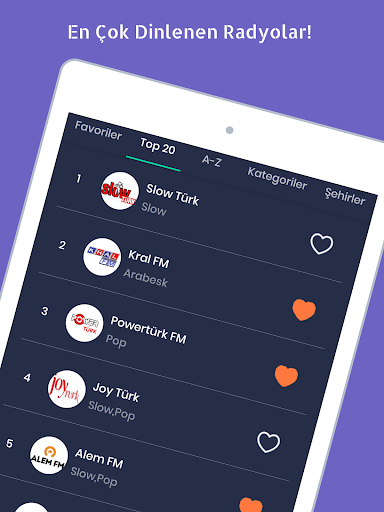 En çok dinlenen radyoları ise popüler radyolar kısmından takip edebilirsiniz. Türkiye'de reytinglere göre en çok dinlenen radyolar şu şekildedir;
