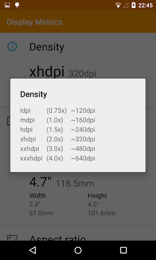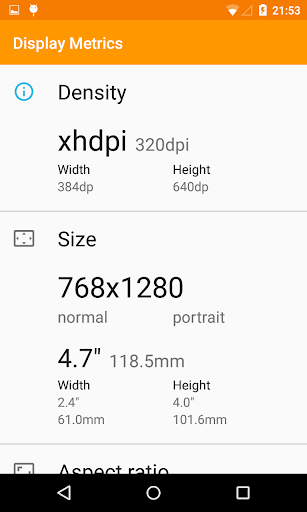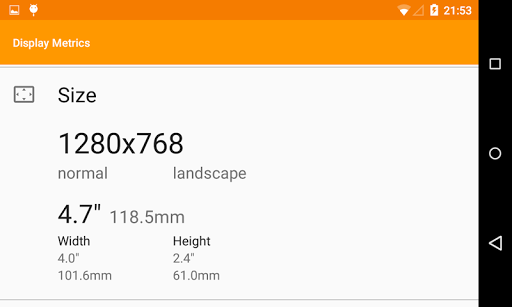 Display Metrics is a simple tool for showing the most important information about device display.