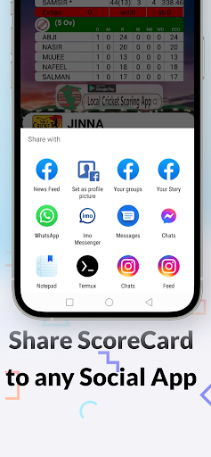 --> you can Share any score card directly to any social media app like facebook, whatsapp,telegram etc.