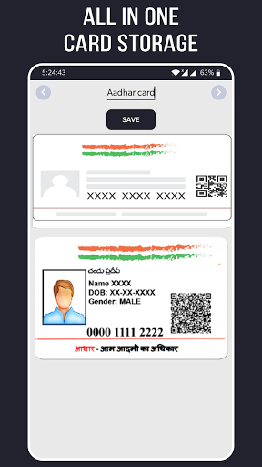 - Capture Photo of your id card and Save it into ID Card Wallet- Full ID Card Photo- Safe & Secure With Passcode- You Can Save All ID Proof with This Card Wallet App- Easy to Use Apps- Voter Card, PAN Card, Aadhar Card, Ration Card, RC Book get easily by using this id card app- All id cards, identity cards, business cards, visiting cards, bank cards(Credit Card, Debit Card), loyalty cards, pan card and voter id card check quickly- One can view, add, update and delete cards easily- ID proof saved on your android device storage So You can avoid miss use of ID proof All this features in the app our complete free to use and we do don't collect or save any of your documents or cards in our server. They remain securely on your phone.