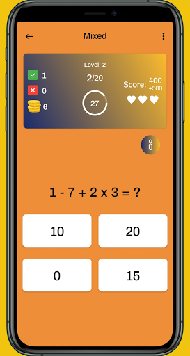Develop your intellectual facilities by solving various mathematical tasks as quickly as possible: addition, subtraction, multiplication and division! Limited amount of time for answering only stimulates your brain to work faster, better and more efficiently.