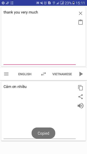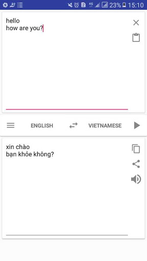 With this app you can easily translate words and texts from english to Vietnamese, and from Vietnamese to english.