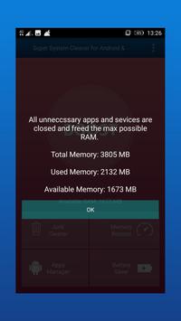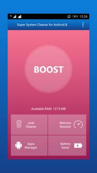 Super System Cleaner for Android The Junk Files Cleaner for Android is a free app that can help clean redundant apps and junk leftovers, clear up free space to store and clean your RAM. Also, you can speed up phone calls and Leave a long battery life.