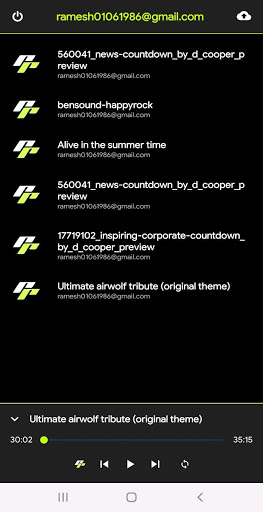 This app upload your favourite Mp3 songs, audio clip, to cloud storage and playback online with the integrated MP3 Player.