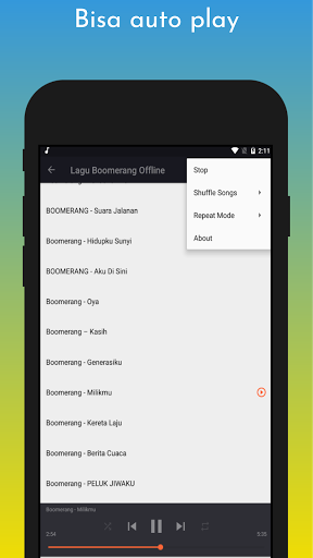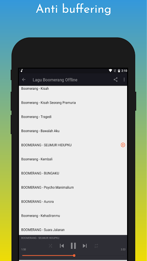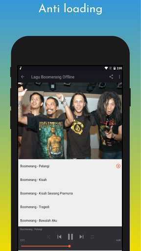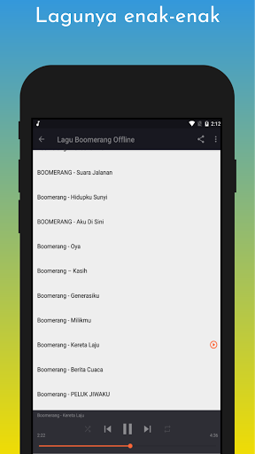 ဤလျှောက်လွှာတွင်နားထောင်ရန်လွယ်ကူသည့်အော့ဖ်လိုင်း Boomerang သီချင်းများစွာပါရှိသည်။ ဤလျှောက်လွှာသည်အလွန်ပေါ့ပါးသောကြောင့်သင်၏အင်တာနက်ခွဲတမ်းကိုမဖြုန်းတီးပါကဤသီချင်းကိုမည်သည့်နေရာတွင်မဆိုသင်နားထောင်နိုင်သည်။