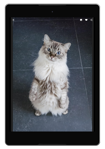 Like a picture so much that favoriting it isn't enough? Then set it as your device's wallpaper! To set a cat picture as your wallpaper, open it in the full view and use the zoom/drag controls to get the picture exactly how you want it. After that, just click the wallpaper button at the top of the page to set it as your wallpaper, simple as that.