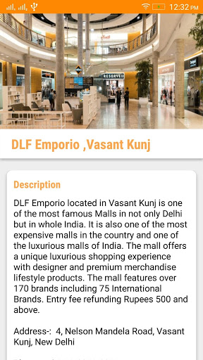 Delhi is the Capital City of India and also a larger city of world.If you are new in this city so don't worry this app provides all details about this city.This app provides all information's about the Parks , Hospitals ,Restaurants ,Shopping Malls ,Religious Places ,Hotels ,Bazaar ,Bars,Resorts ,Sports places,Museum,Entertainments places and beautiful places in dehli .You can visit all places which is near to you.