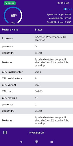 PhoneInfo checker is the Best Phone Information Checker software WorldWide Used by Millions of Users. PhoneInfo Checker Auto-detect Software and Hardware Information Form Your Device and show that to you. Find Latest Smart Phones information With this tools is extremely easy for anyone. it shows to the processor model, company, bit, same as for ram. it shows graphical information of device to you.