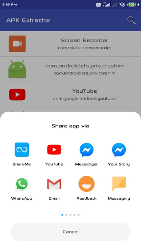 This application will extract application from mobile phone and share with other application of extracted android application.