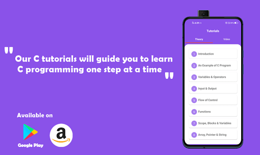This Learn C Programming app is fully loaded with the latest 100 programs, tutorials, Lessons, and even Quiz to test your knowledge in C when you are ready.