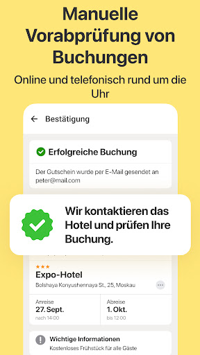 Wir garantieren höchste Zuverlässigkeit. Damit Sie sicher sein können, dass Ihre Kunden im Hotel erwartet werden, führen wir eine manuelle Vorabkontrolle aller Buchungen durch und überprüfen die Details jeder Buchung noch einmal mit dem Hotel.