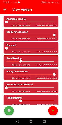 Photos and status of the repair process are uploaded by the repairer for the client's viewing convenience.