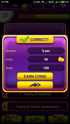 (7) Earn Virtual Coins for free - In order to use features like 50:50 and Audience Poll, You need virtual coins. Fortunately, We have added many ways through which you can earn these coins even for free or by watching a simple Ad.