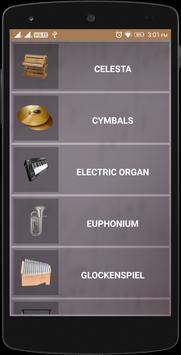 It is very easy to use, just press a button to listen the sounds. Musical Instruments Sounds includes huge collection of instrumental sounds with exceptional quality which will be played when touched on the respective image.
