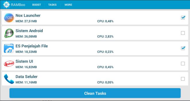 RAMBoo can petrify games in your phone run faster without lag with cleaning applications are considered less important in the system memory or RAM.