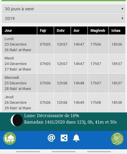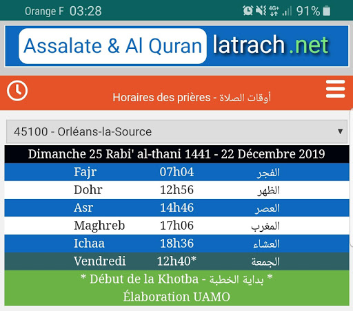 Assalate (أوقات الصلاة) - Les horaires de prières musulmanes pour les villes de la région Centre-Val de Loire: