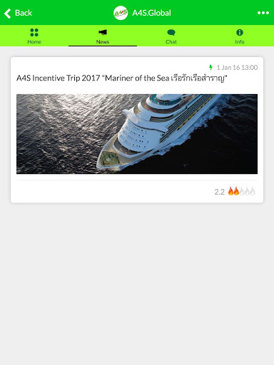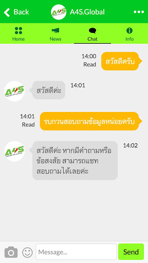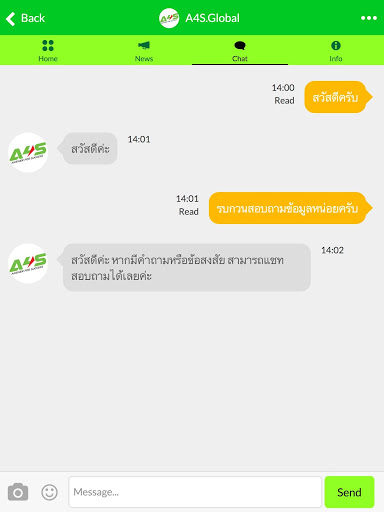 Application supports A4S's Member for their convenience. A4S Global is a social network application which allowed them to work on their unique business needs for more quickly and easily. A4S Global allows member to check their member group, check their CV and status, research product information, NEWS, Promotion, Announcement.