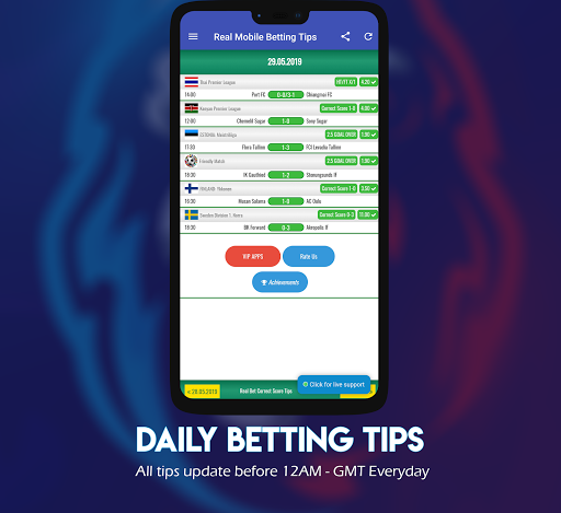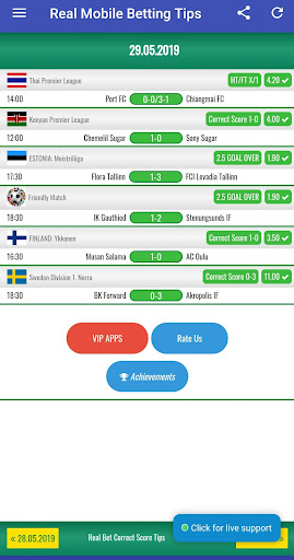 If you wish to have high odds, you can purchase one time our Real Bet VIP Correct Score Tips application and use it life time. Real Bet VIP Correct Score Tips application provides sure betting tips and wins always.