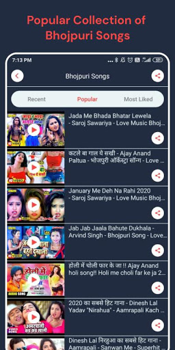 There are many different video categories of bhojpuri video songs app in best user interface.