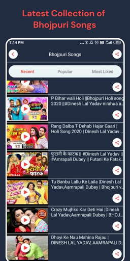 This app contains all your favorite Bhojpuri Video Songs. Bhojpuri Latest Video Songs 2020 app brings you latest and popular Romantic Bhojpuri Video Songs, videos from your favorite stars Amrapali Dubey video Songs, Monalisa video Songs, Kajal Raghwani Songs,Pawan Singh video Songs,Kalua Bhojpuri video Songs, Akshara Singh video Songs, Nirahua Video Songs, Khesari lal Video Songs, Arvind akela Kallu Ji Video Songs, Subhi Sharma Songs, Rani Chatterjee Bhojpuri Songs, Priyanka Pandit Video Songs, Pakhi Hegde video, Anjana Singh video, Seema Singh video, Ritu Singh video, Dinesh Lal Yadav Bhojpuri Songs, Chandani Singh video songs ,Nidhi jha Bhojpuri Video songs,