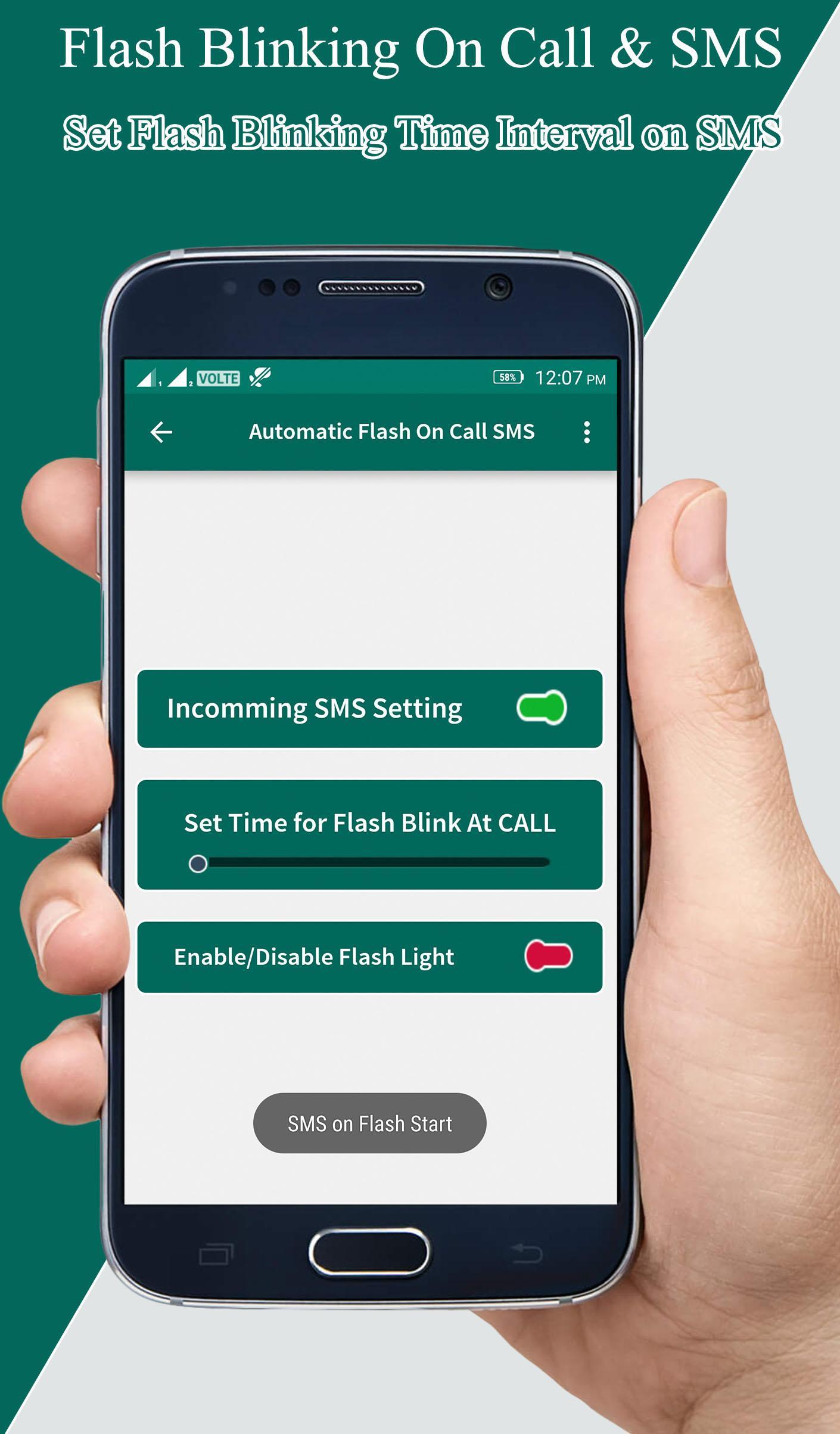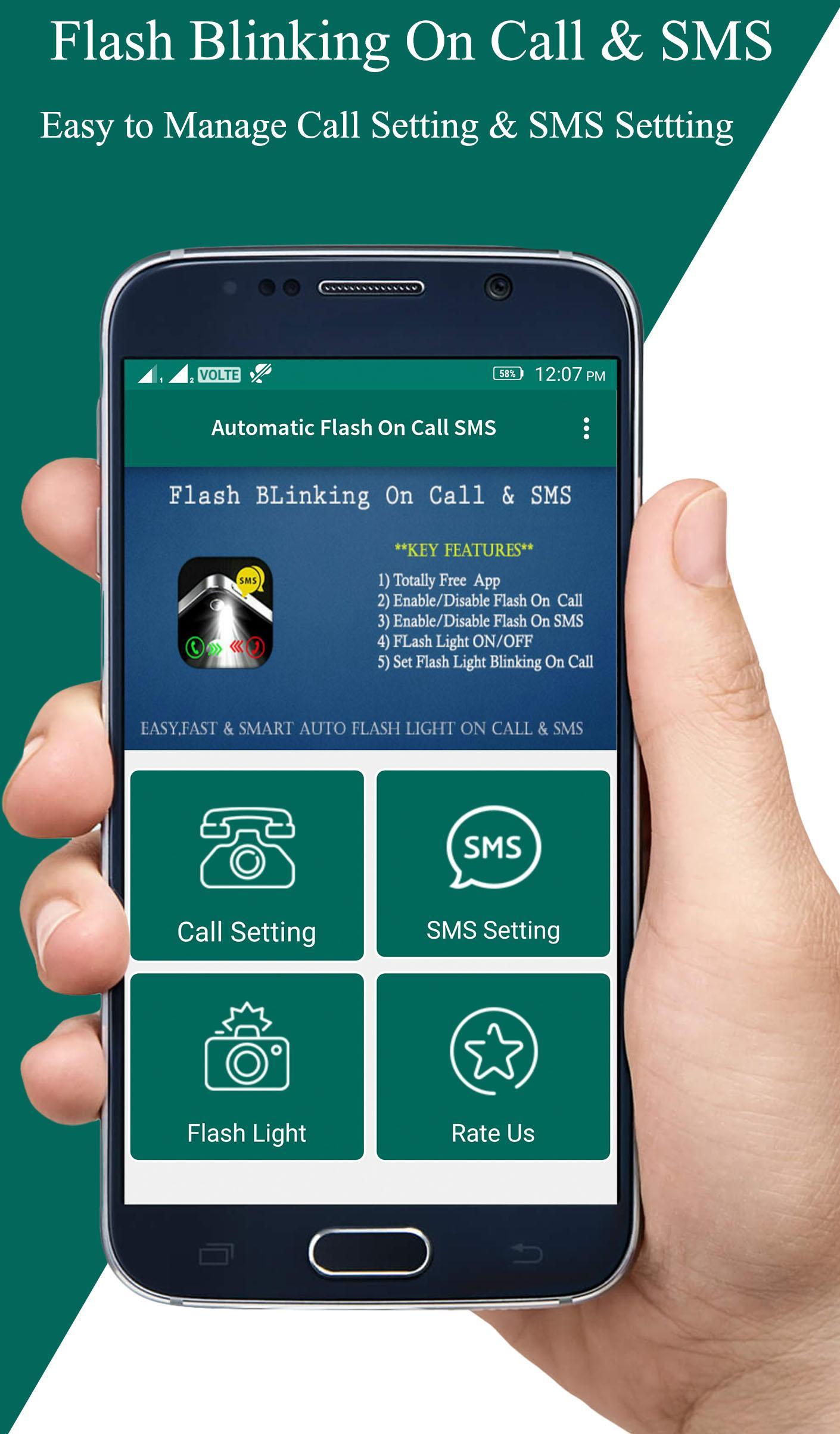 Flash alerts will blink the back LED and notify with camera flash notification for call and SMS notification alerts. Flash on call and Flash on SMS give you blinking flash notifications. You can use this application as flash blink on notification, flash on call, flash blink on call or flash blink on sms or brightest flashlight on call and sms. This is a flash light app for calls alerts and SMS alerts.