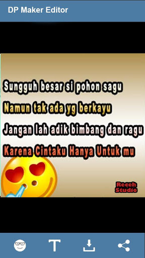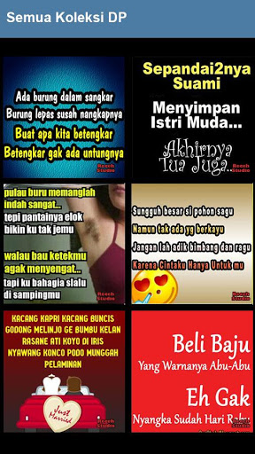 Nikmati koleksi DP yang sangat keren dari aplikasi Gambar Kata Pantun Lucu dan ungkapkan perasaan anda kepada teman teman anda tentang apa yang anda rasakan hari ini, kami bersama anda Receh Studio