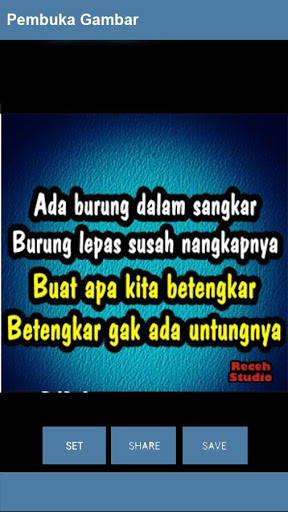 Aplikasi ini berisi kumpulan gambar kata atau DP dengan jduul Gambar Kata Pantun Lucu yang sangat bagus menjadi sahabat eksis anda di sosial media