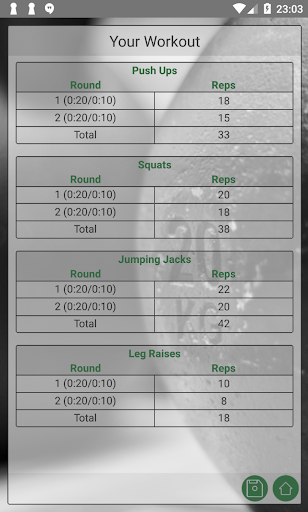 - A workout summary screen that let you review your performance and save it for future consultation.