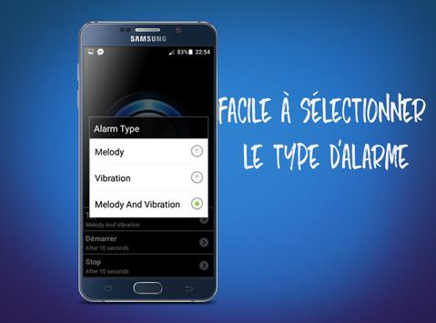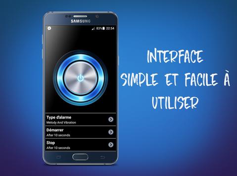 permet de garder votre téléphone à l'abri des gens curieux et des voleurs. Une fois que vous activez l'alarme, une alarme sonore retentit si quelqu'un bouge ou débranche le téléphone du chargeur.