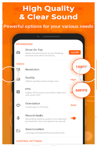 ------ Control screen recording through floating window or notification bar; hide floating window for frameless video
